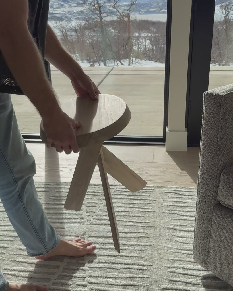 Designed as a sitting stool, the wooden three legged stool offers a sturdy and stylish extra seat when needed.