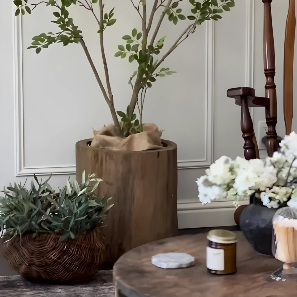 This versatile vessel makes a bold, grounded statement, whether styled with tall branches, dried florals, or left beautifully bare. Its sculptural form also functions as an indoor planter pedestal, perfect for showcasing your favorite greenery. Thoughtfully designed as a wood plant pot indoor accent, it also works beautifully among decor planter pots to elevate any interior with organic texture and artisanal character.