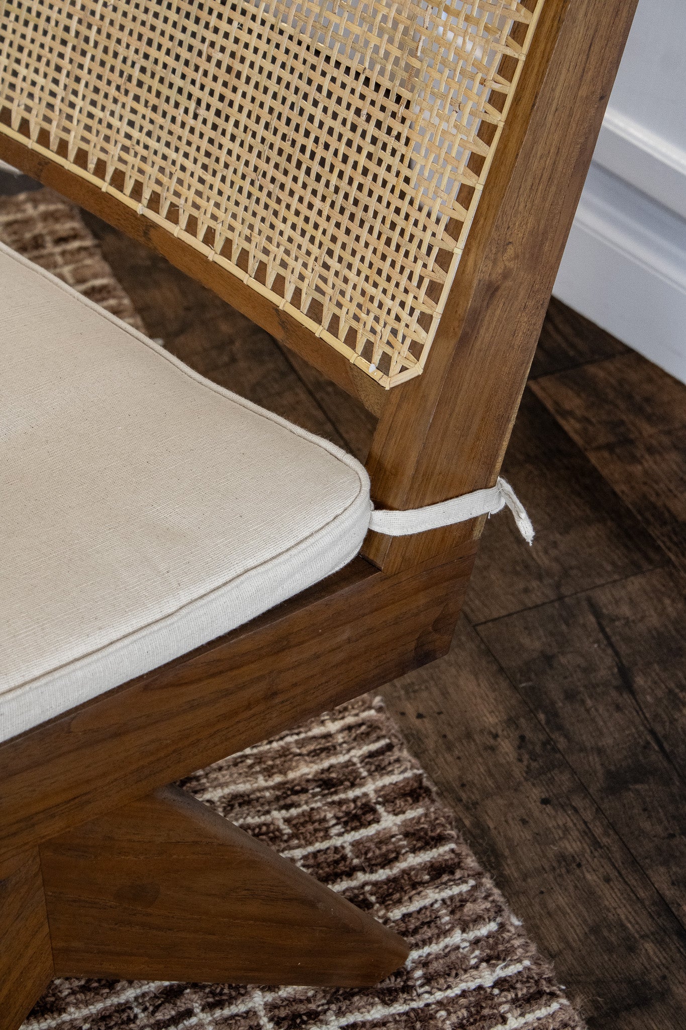 The Easy Lounge Slipper Chair is inspired by the iconic Chandigarh designs from the 1950s, reinterpreted as a pierre jeanneret lounge chair. It is handcrafted using the same materials and techniques as the original design.