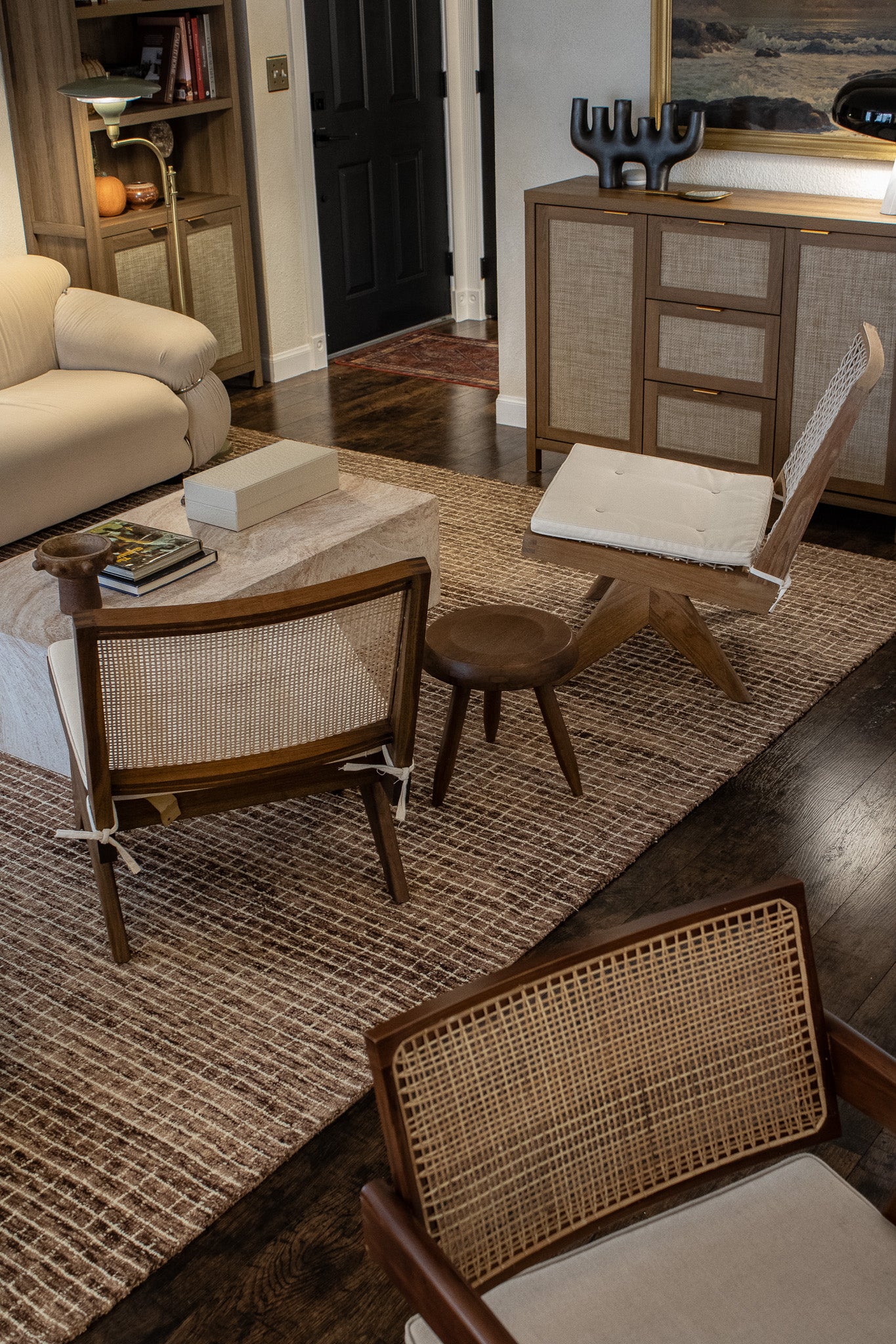 - Handwoven cane seat and back provide breathable comfort and timeless appeal.