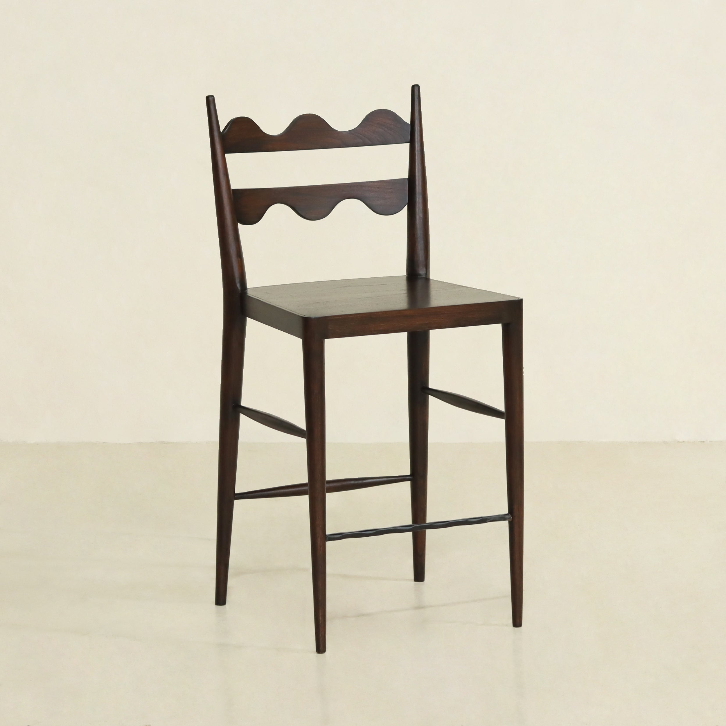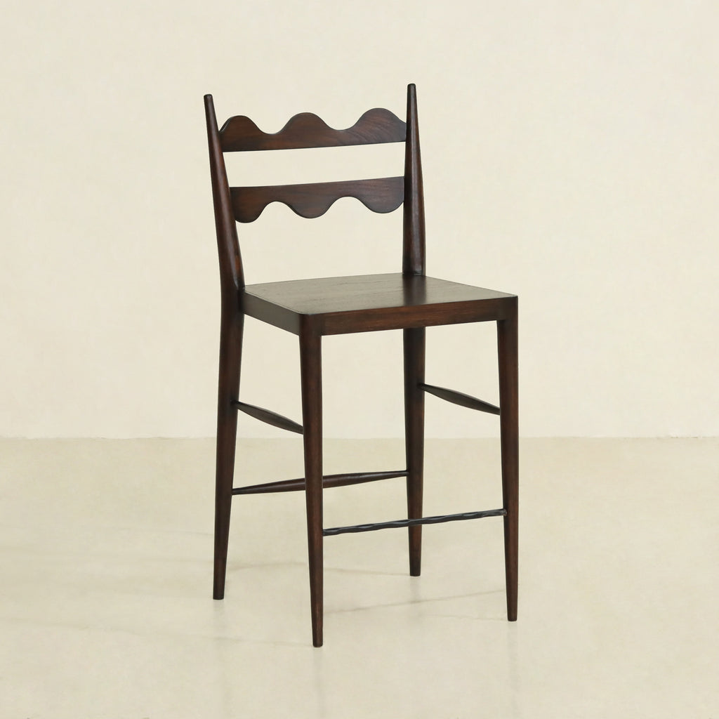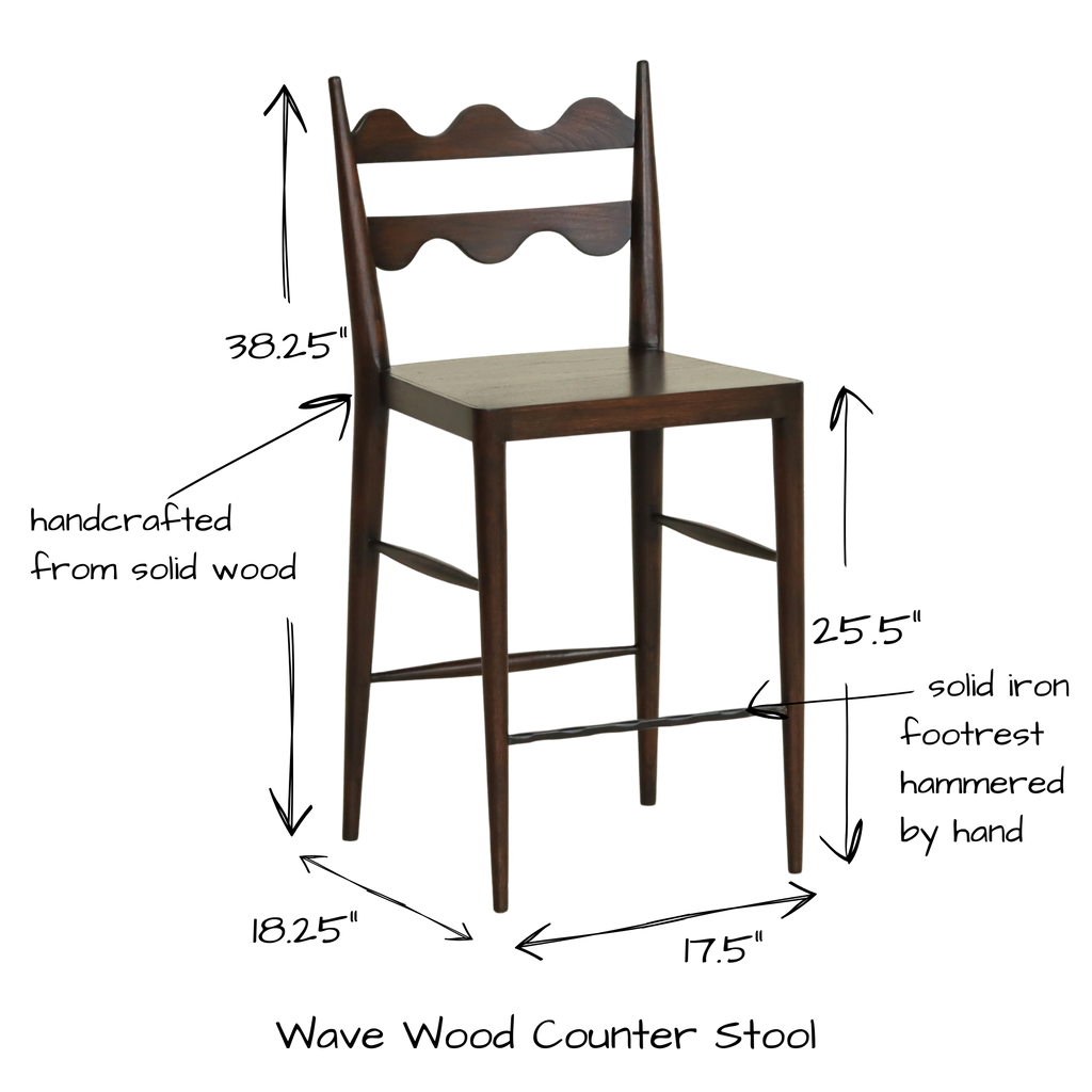- Signature wavy ladder-back design with dual horizontal slats balances artistry with ergonomic counter-height support.