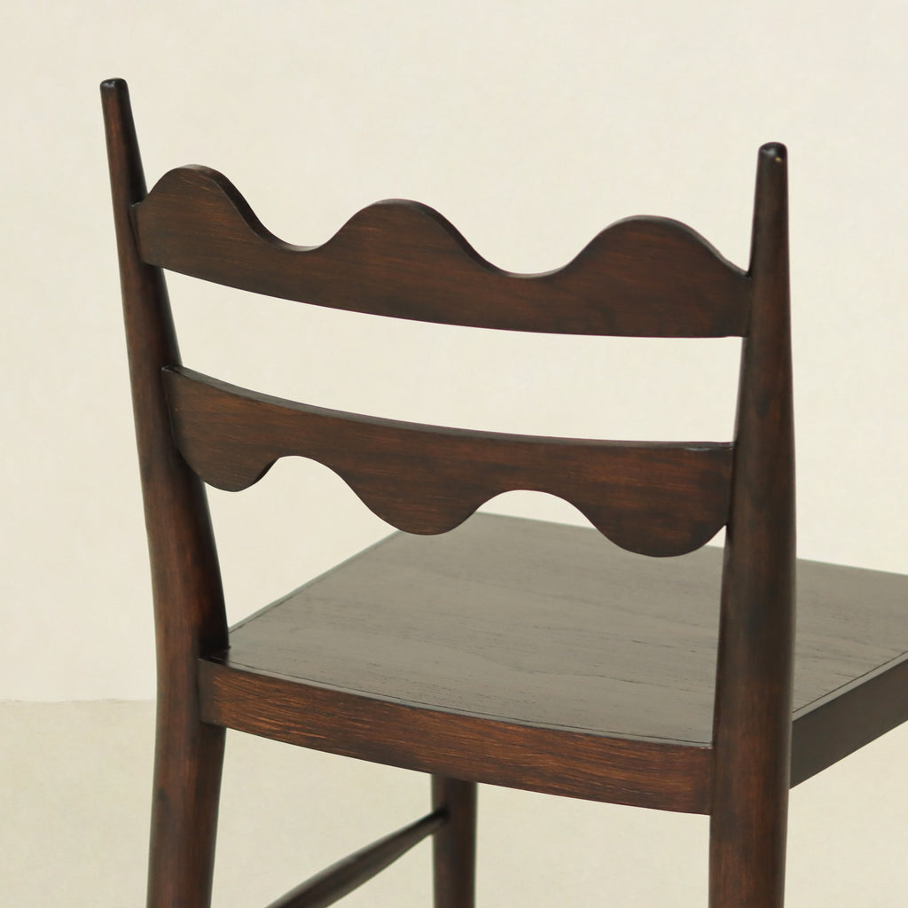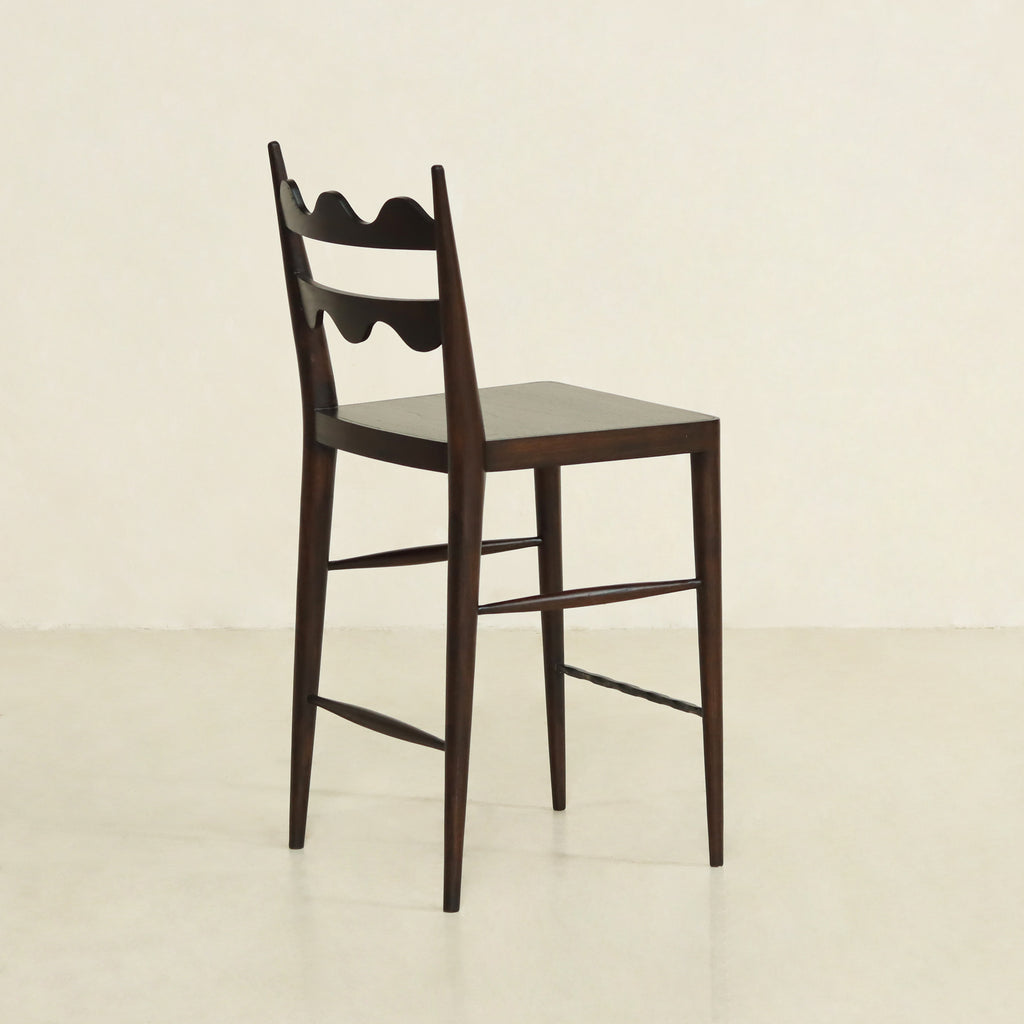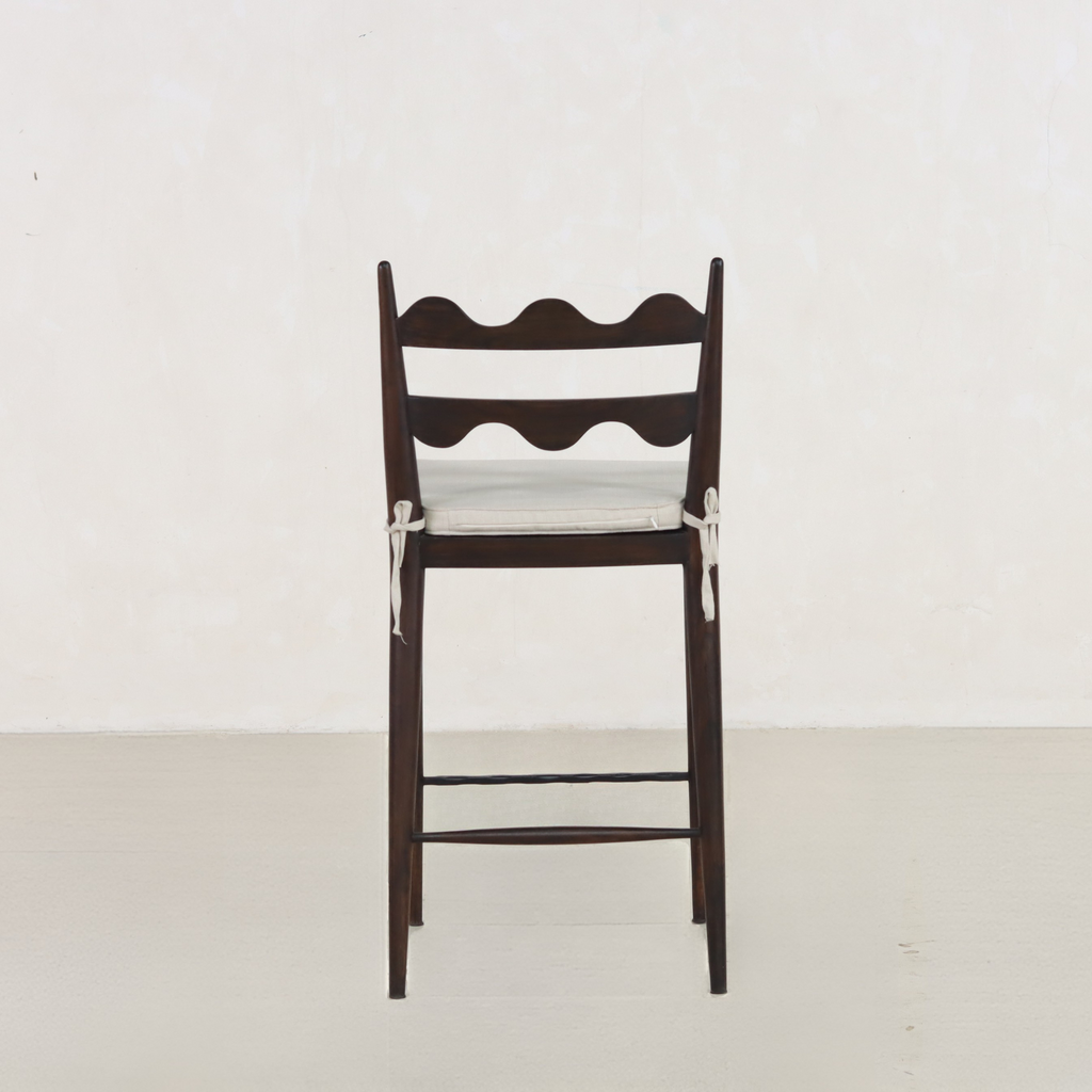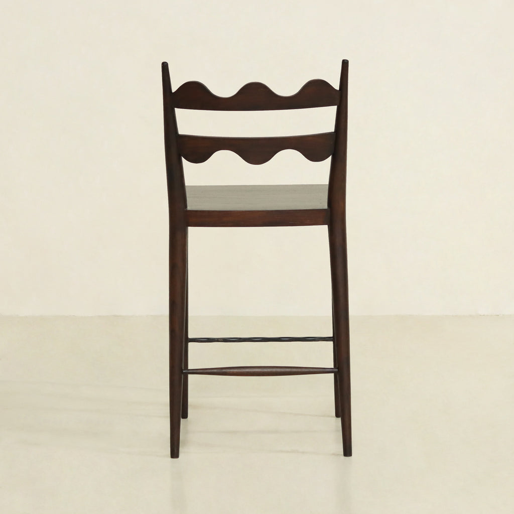 - Signature wavy ladder-back design with dual horizontal slats balances artistry with ergonomic counter-height support.