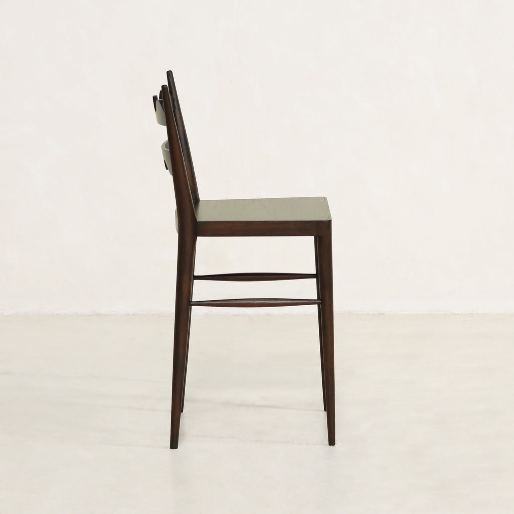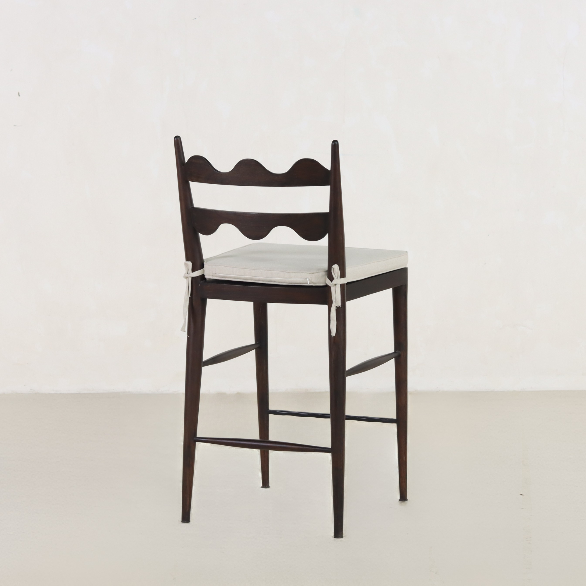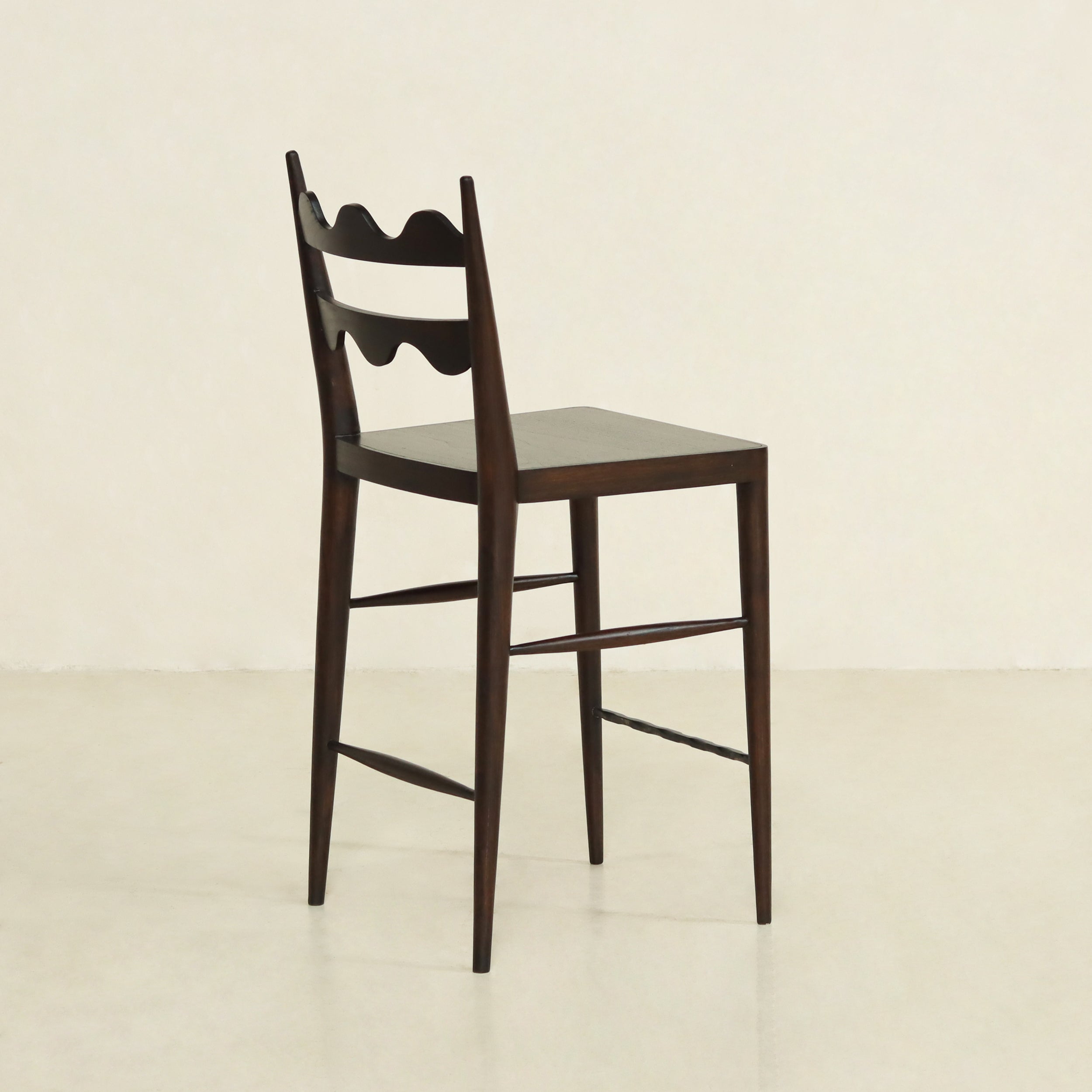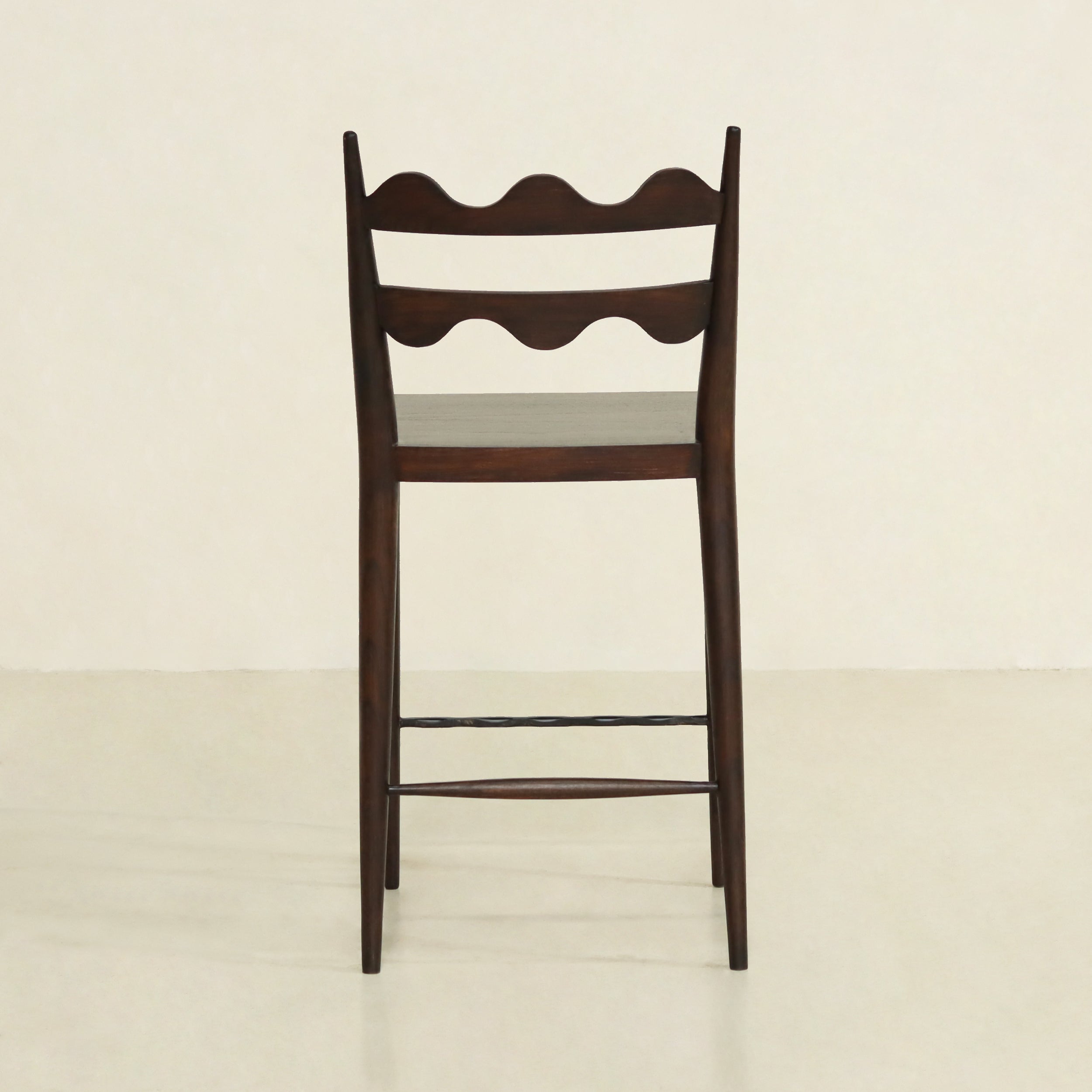 Finished in a rich dark stain, the counter stool highlights the natural grain and unique character of each piece, making every stool one of a kind. Meticulously crafted by skilled artisans, it stands as a testament to craftsmanship and functions beautifully as a kitchen counter stool with back.
