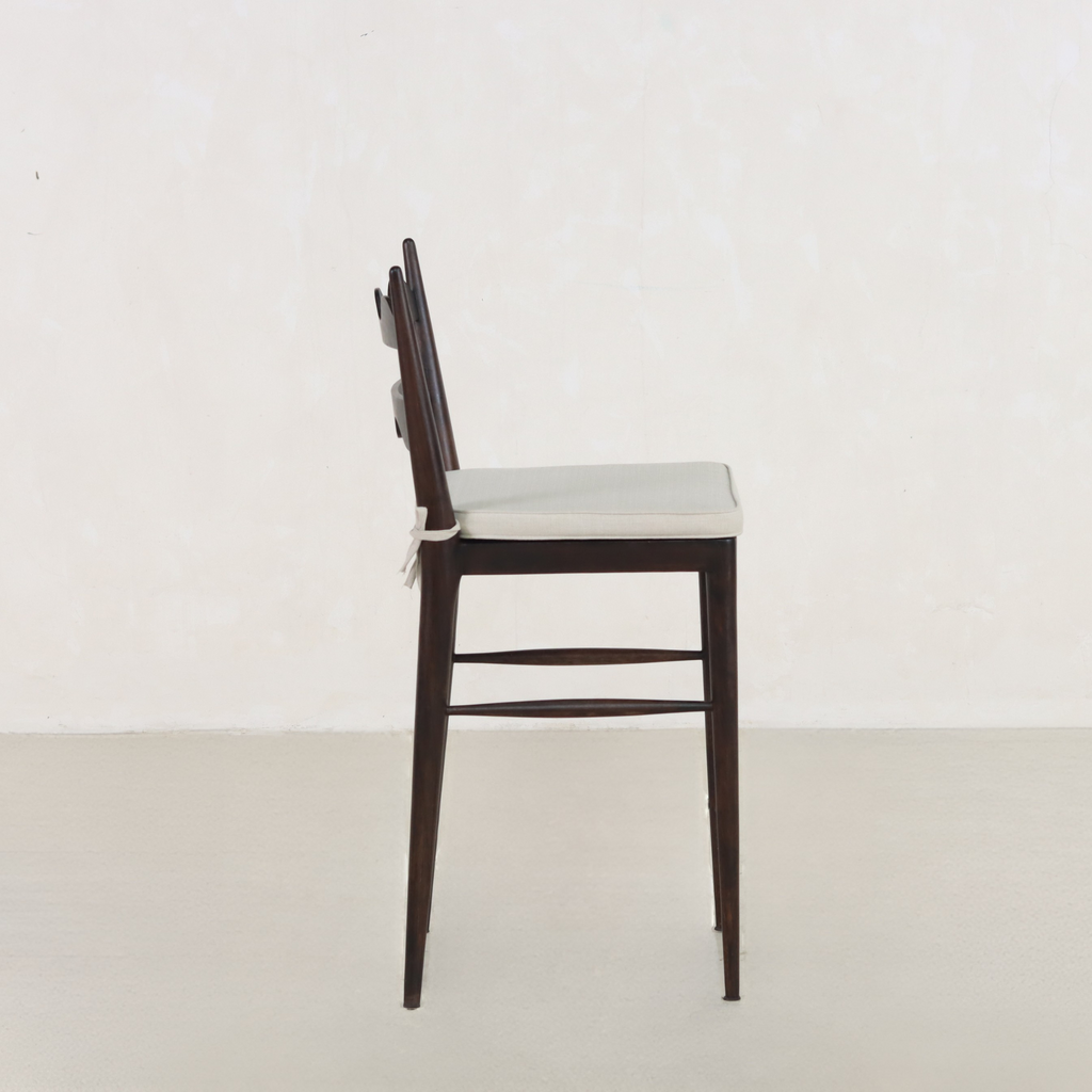 Handcrafted from premium, sustainably sourced Mindi wood, the stool showcases natural durability and eco-conscious beauty. Its tapered legs and solid wooden seat emphasize the integrity of fine materials, while an optional plush cushion adds an extra layer of comfort for long gatherings.